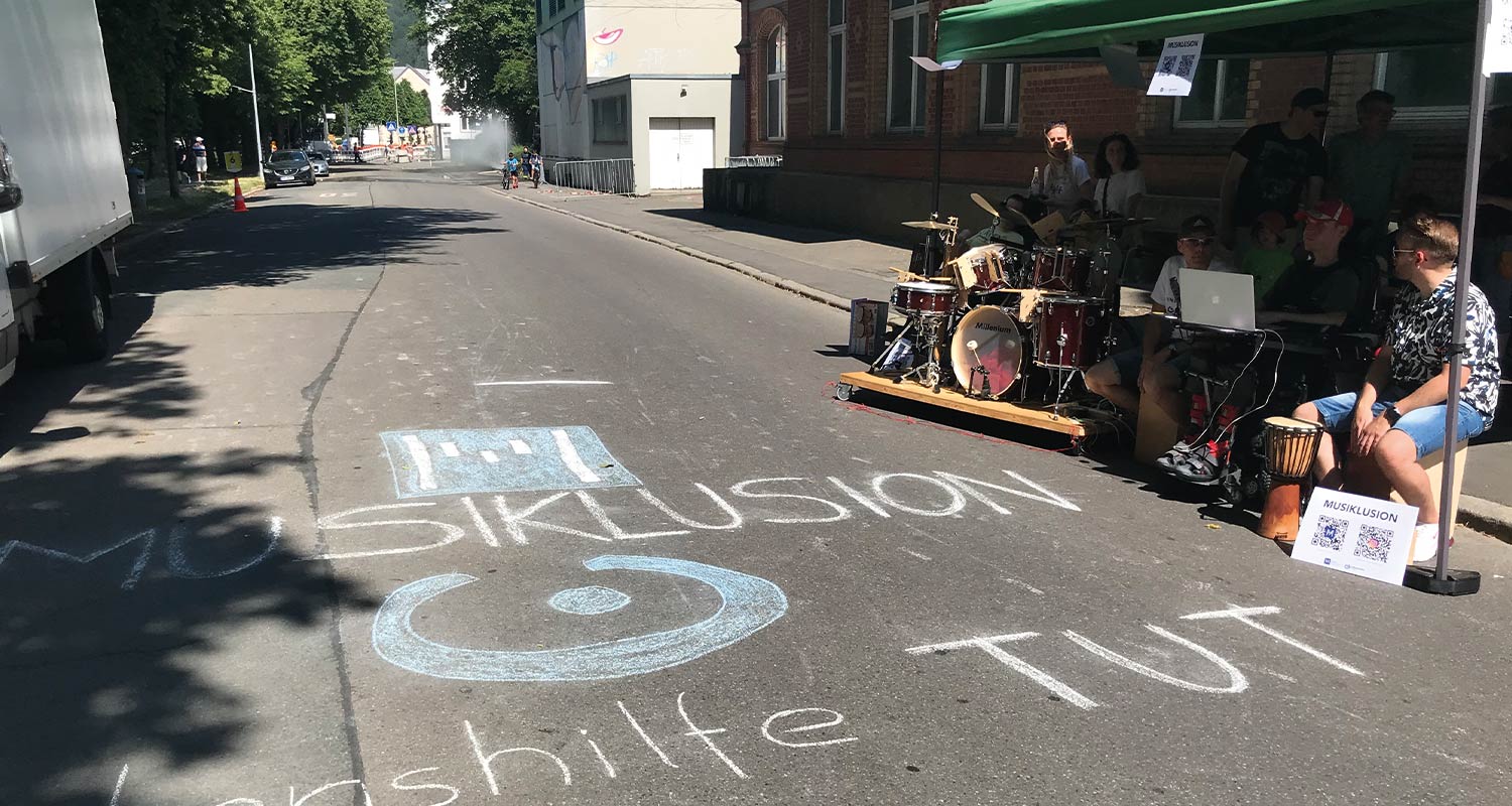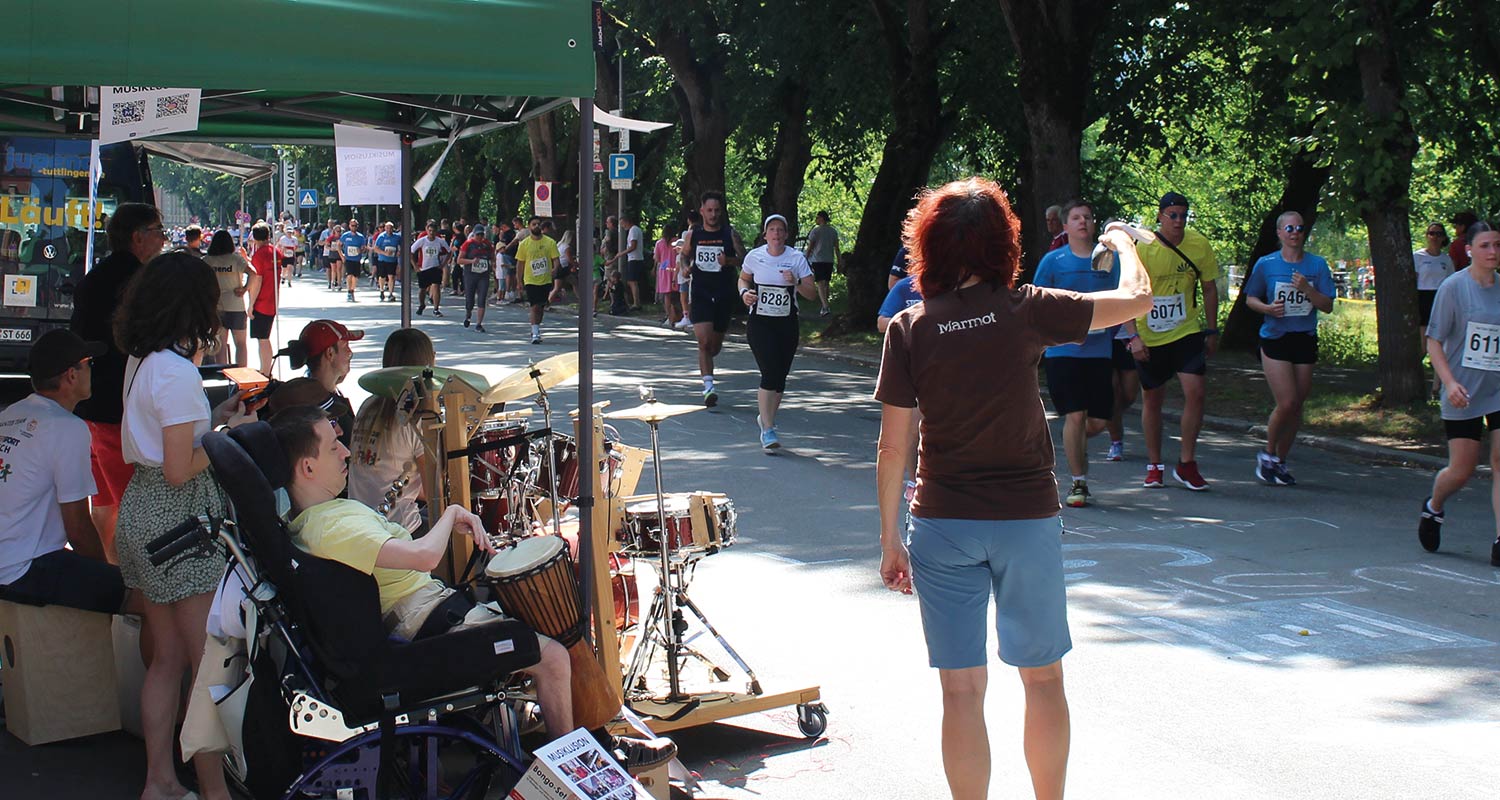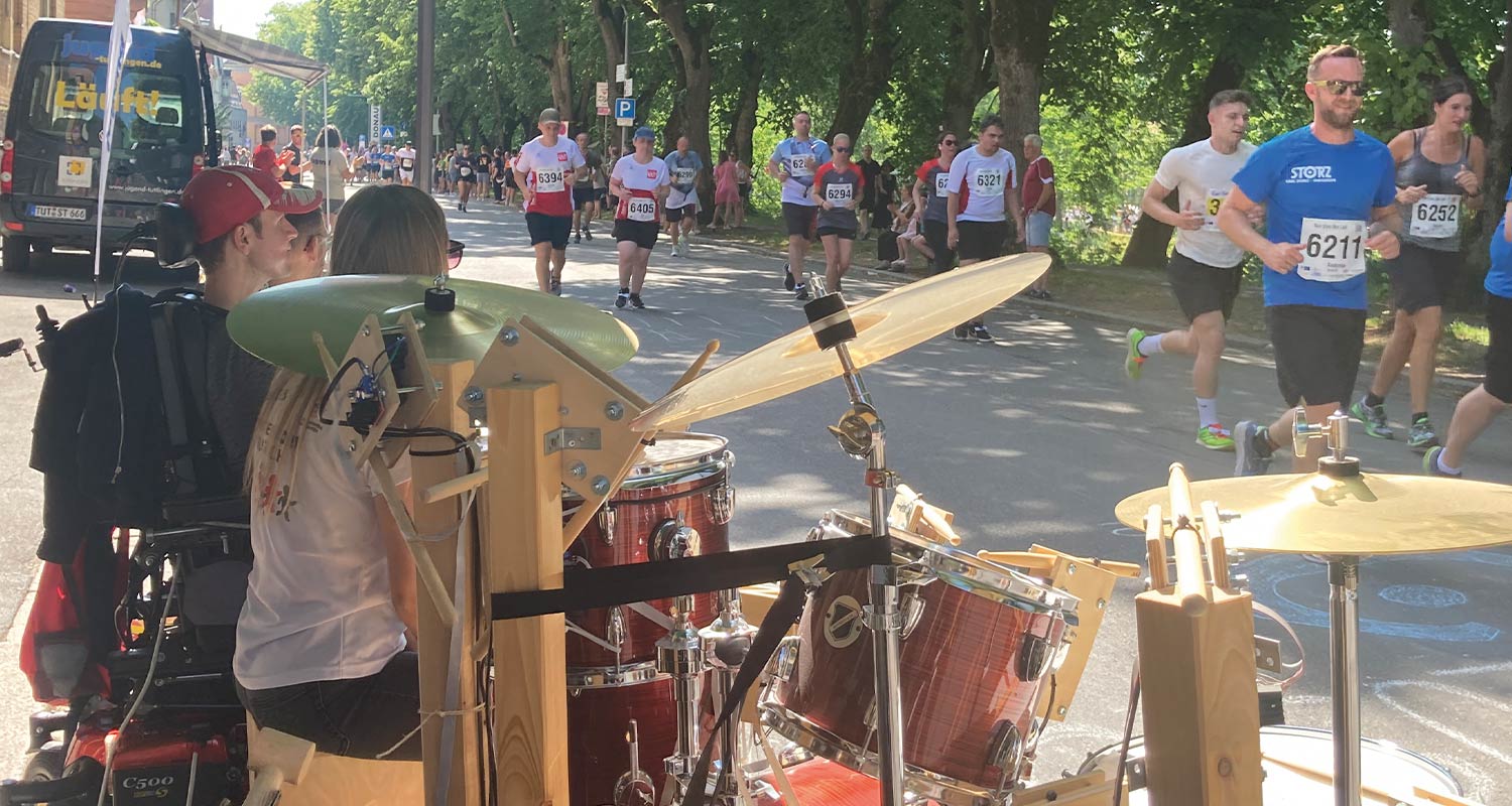 Erstmalig war Musiklusion im Jahr 2023 beim Laufevent „Run & Fun“ in Tuttlingen vertreten. Über mehre Stunden hinweg feuerte ein inklusives Drumset- und Percussionensemble in brütender Hitze die Läuferinnen und Läufer an. Besonders für Peter Schaz war dies ein tolles Erlebnis. Durch das motorisierte Schlagzeug konnte er mit seinem Kumpel aus Kindeszeiten (der zufällig Schlagzeuger ist) gemeinsam musizieren. Auch weitere Beteiligte hatten viel Spaß und freuten sich über ein spontanes Mitspielen von Passanten.